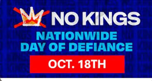 Saturday, October 18: NO KINGS NATIONWIDE DAY OF DEFIANCE. Time: 11 – 2p